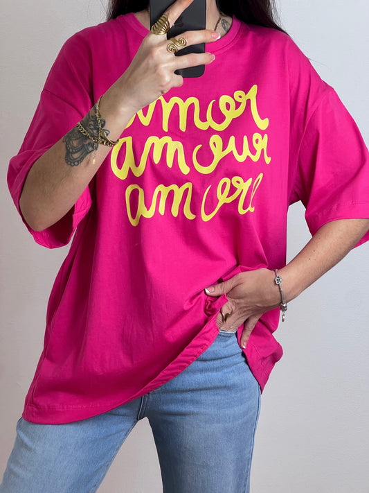Camiseta Oversize Amor -Rosa Fucsia- Talla Unica - REF: 54416A