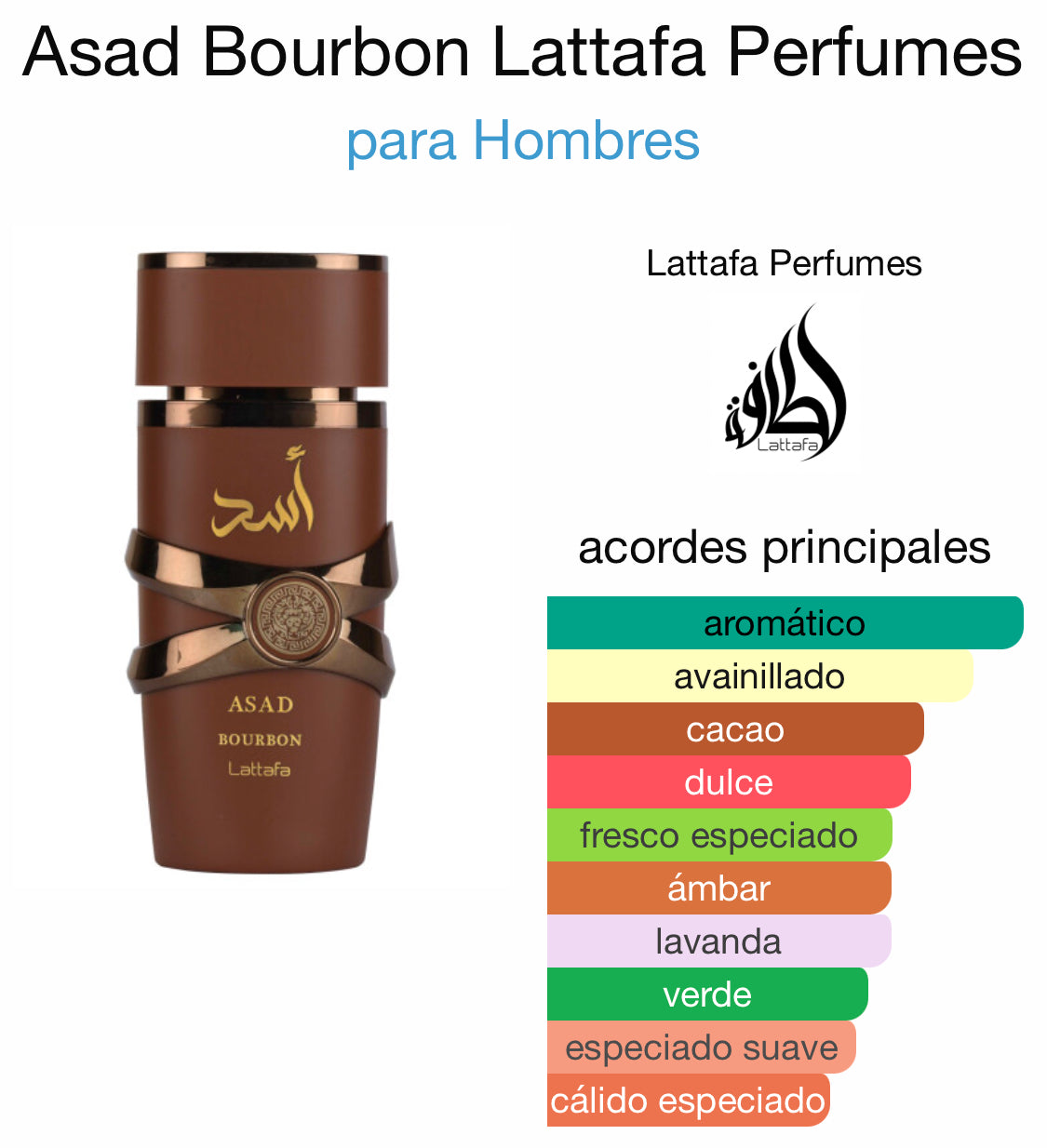 Asad Bourbon de Lattafa Perfumes es una fragancia de la familia olfativa Oriental Especiada para Hombres.