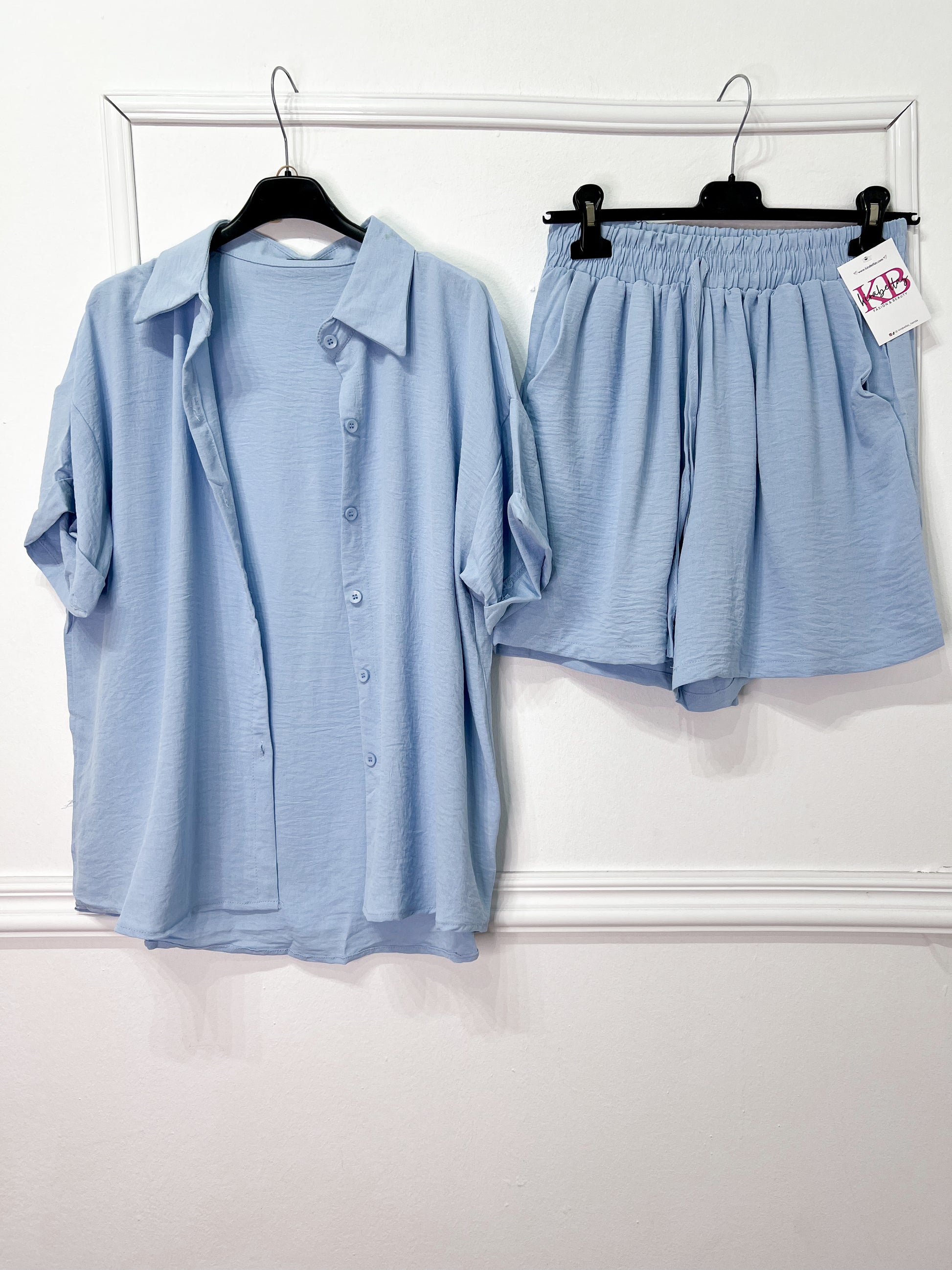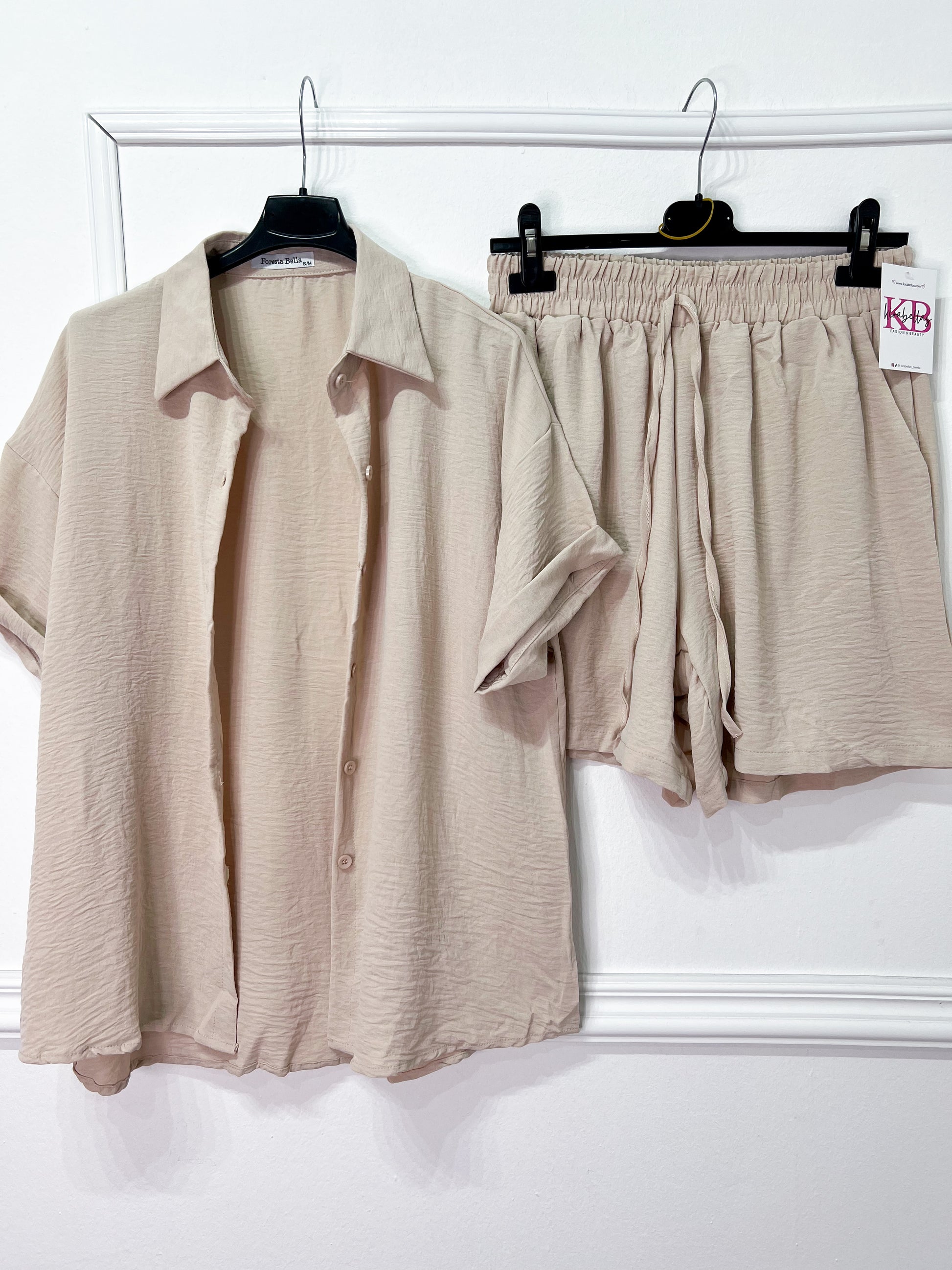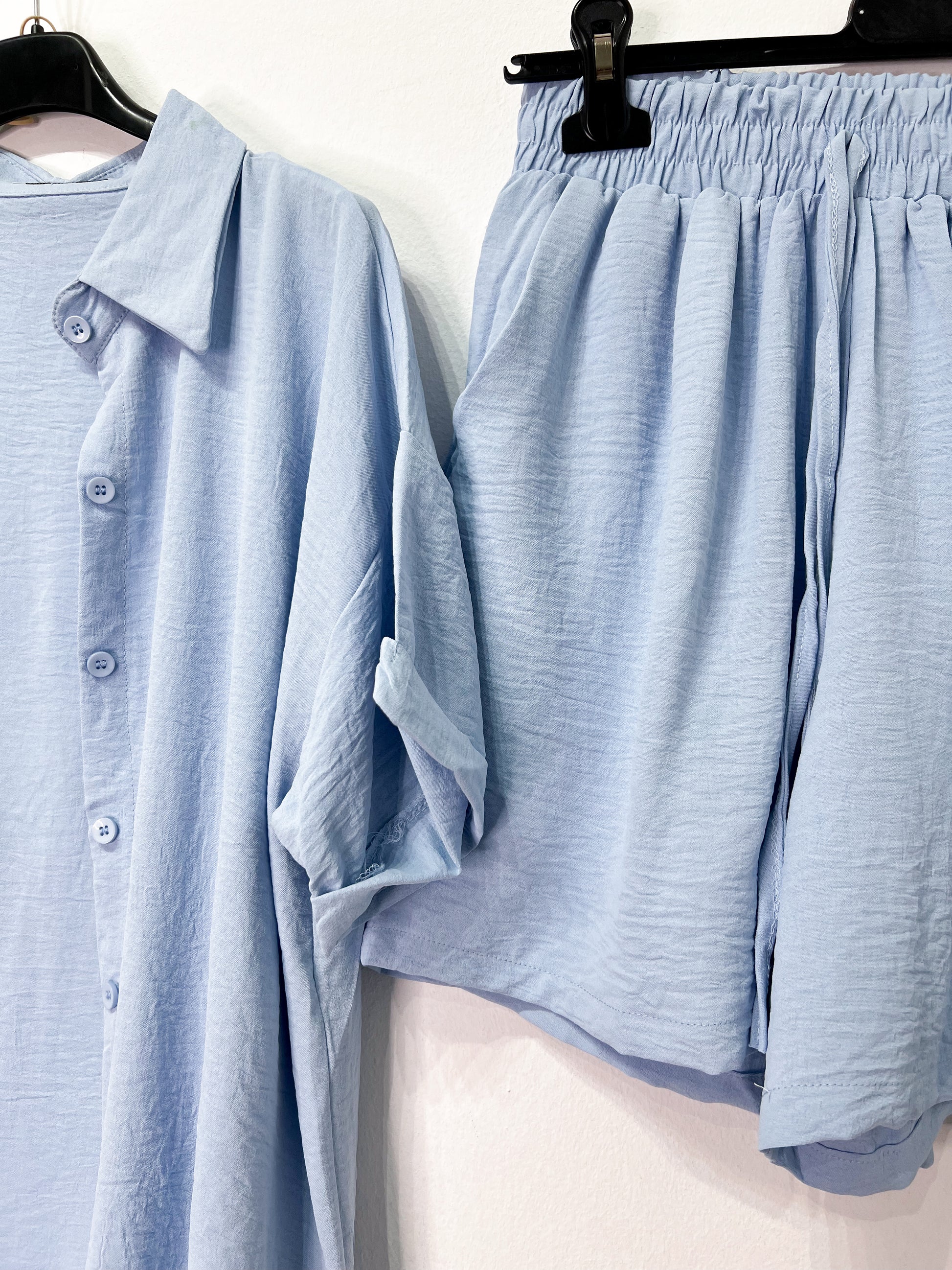 Conjunto de dos piezas compuesto por short fluido y camisa fluida