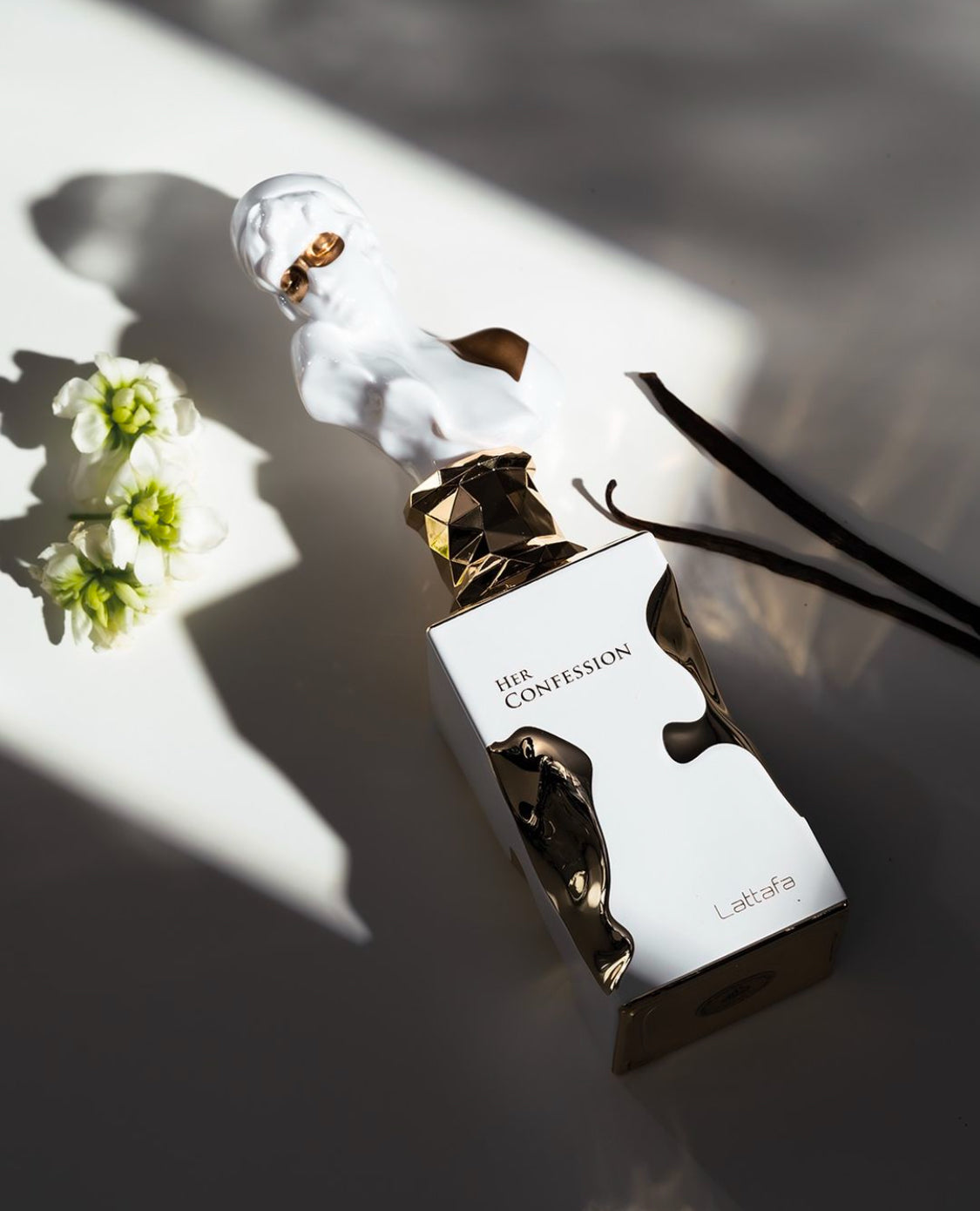 Her Confession de Lattafa Perfumes es una fragancia de la familia olfativa para Mujeres. Esta fragrancia es nueva. Her Confession se lanzó en 2024. Las Notas de Salida son Místico y canela; las Notas de Corazón son nardos, Mahonial, jazmín y incienso; las Notas de Fondo son vainilla, haba tonka y almizcle.