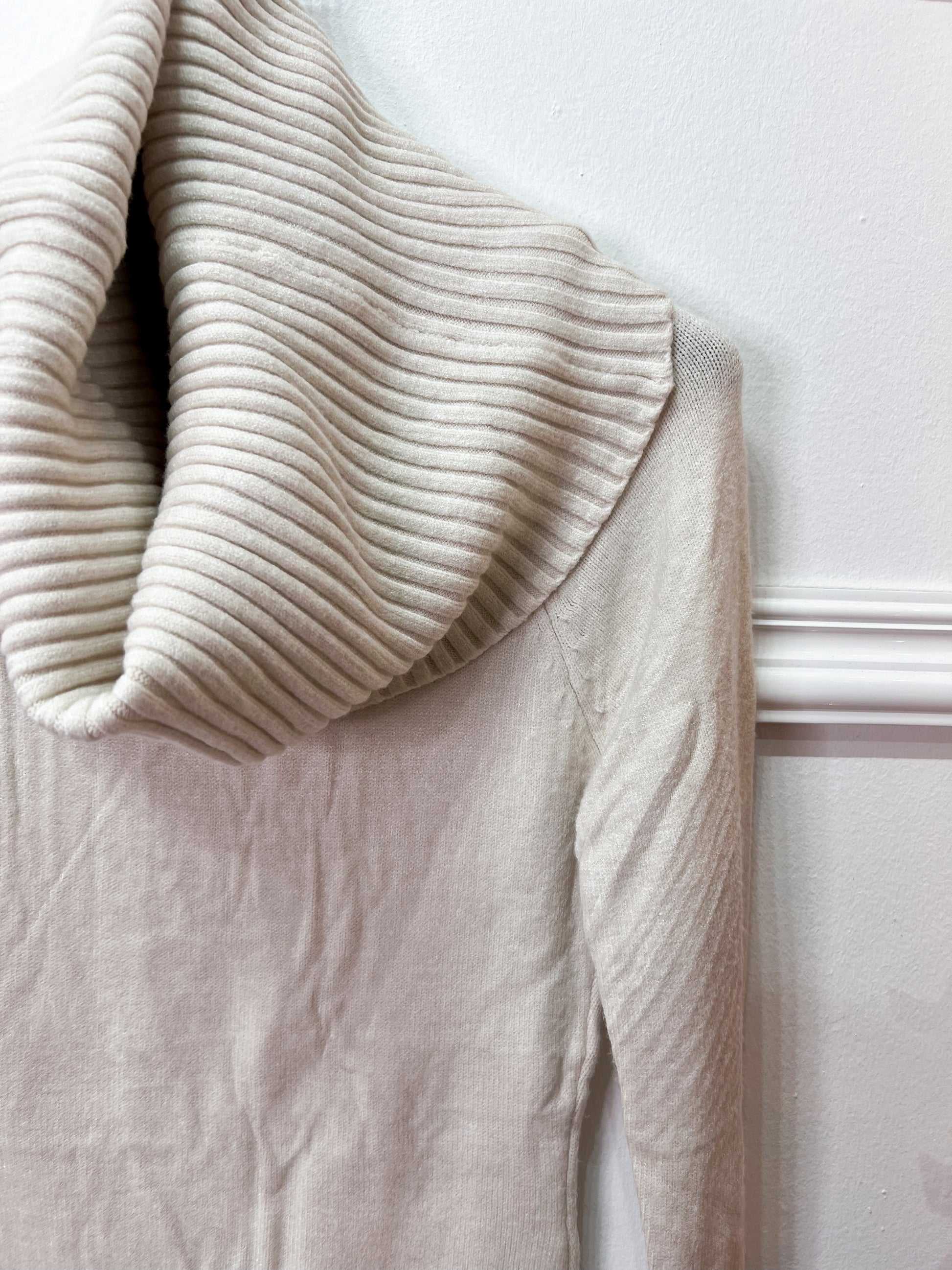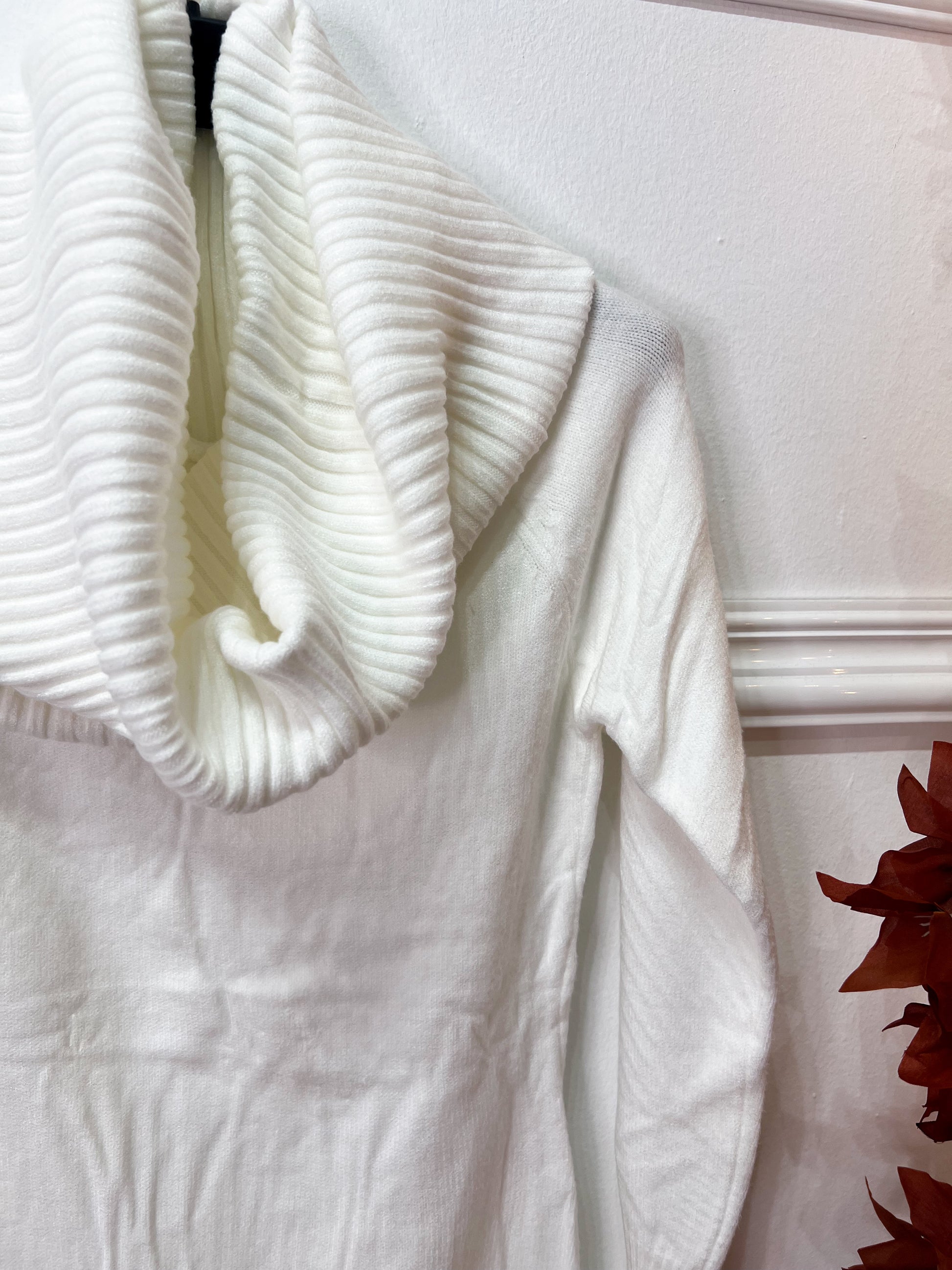 Precioso jersey de cuello Bardot, se puede poner de dos formas, una es con cuello alto caído y otra con los hombros fuera, de las dos formas queda divino! Tiene un género de calidad y al tacto es muy suave y gustoso