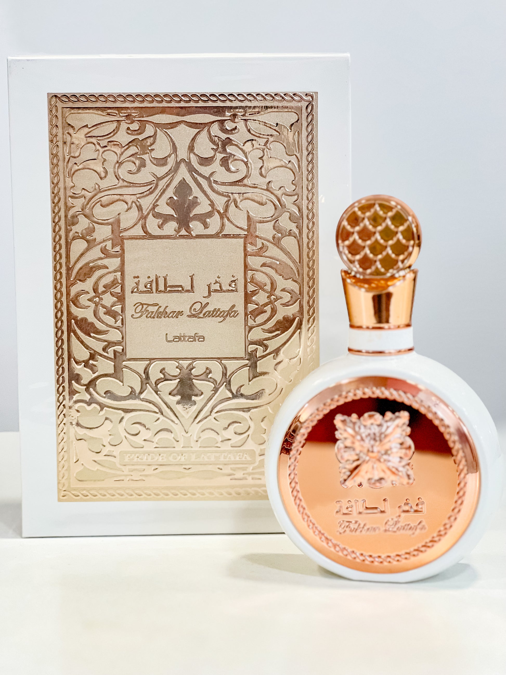 Perfume FAKHAR Rose for Women es una fragancia oriental floral lujosa que está destinada a cautivar los sentidos.