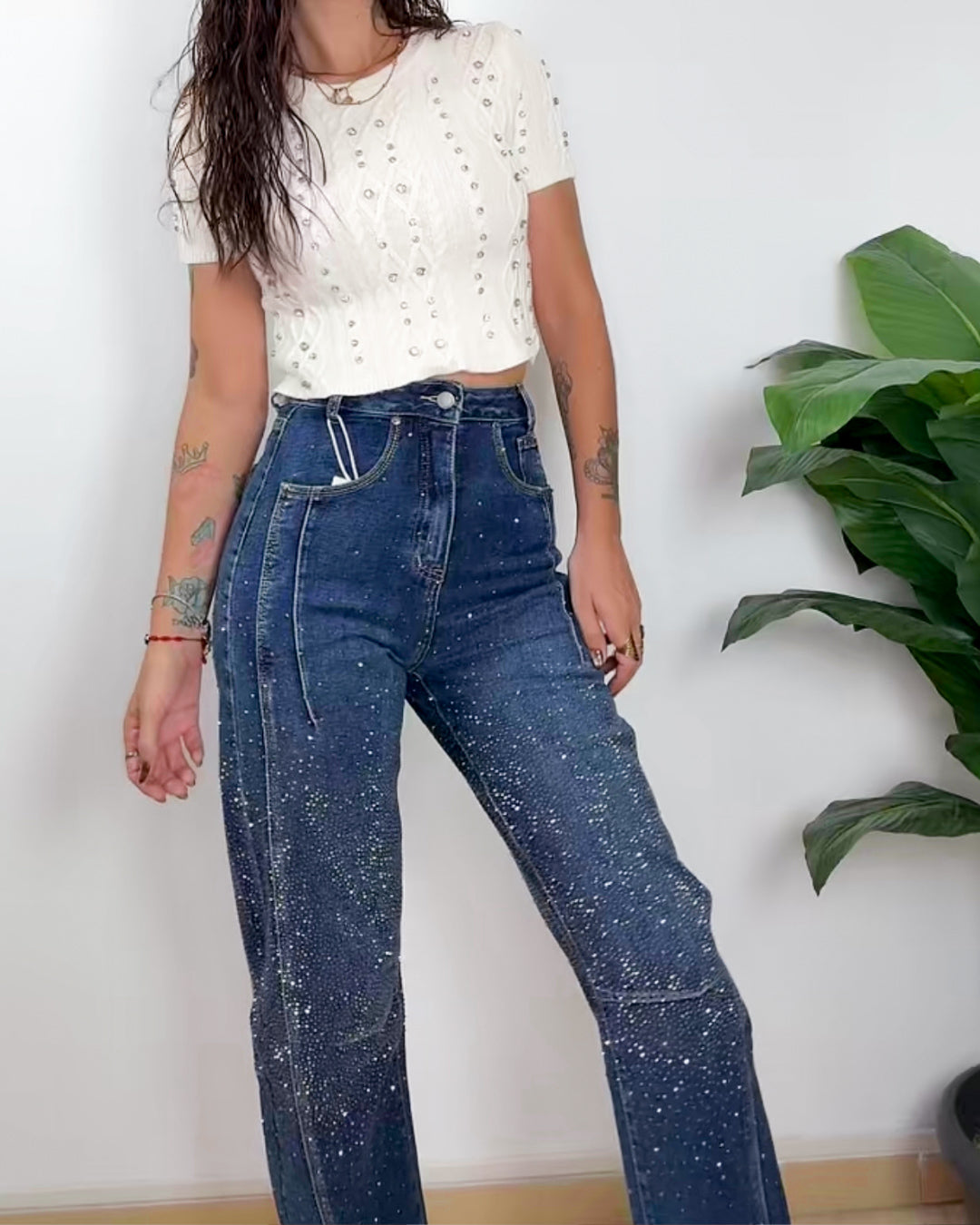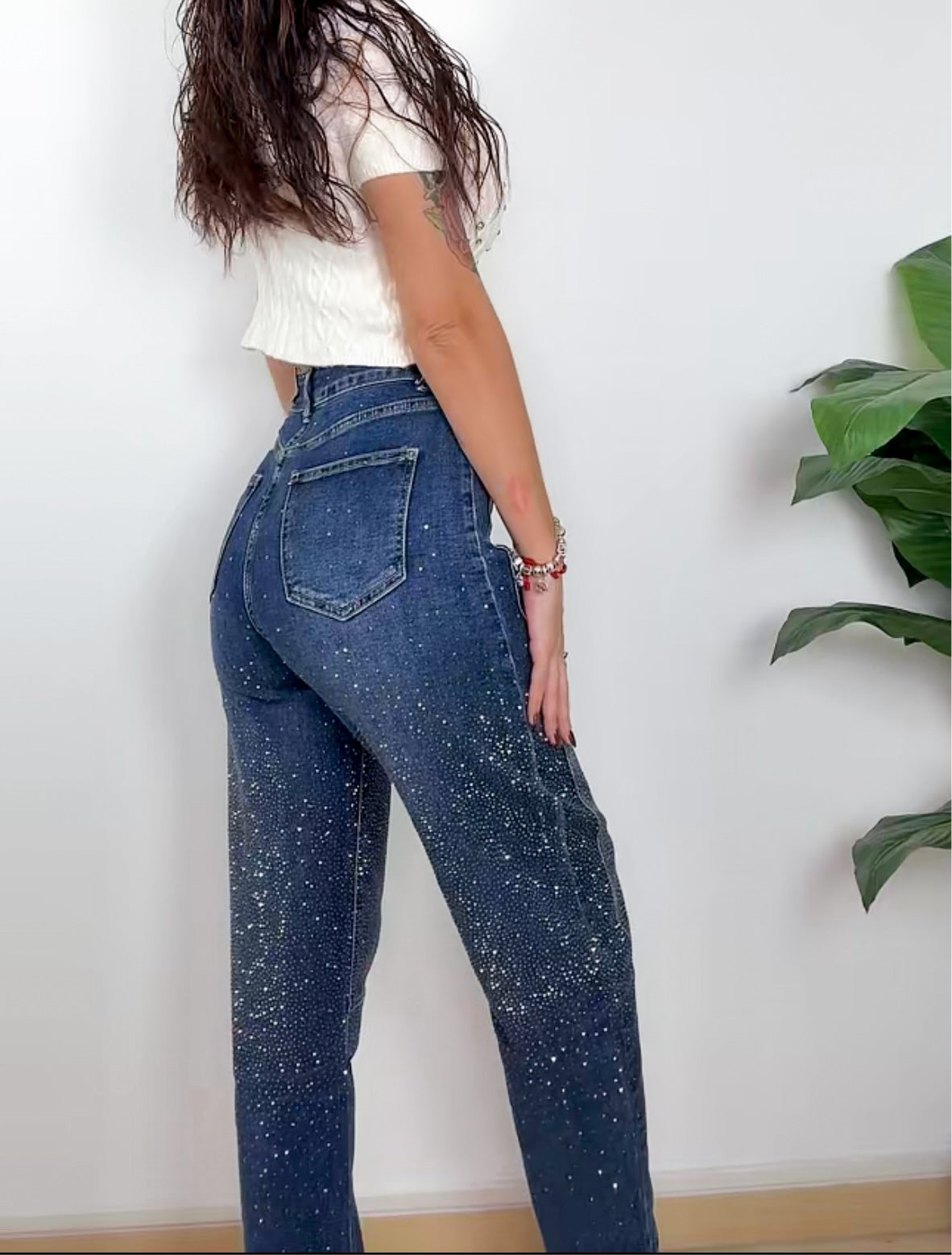 Pantalón tejano balloon de nuestra colección exclusive, tiene Strass tanto por delante como por detrás, los pantalones balloon son tendencia esta temporada.